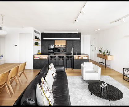 דירה במגדל בתל אביב עברה שיפוץ מהיסוד. הדירה תוכננה בהתאמה לצרכי הדיירים החדשים, חולקה מחדש ועוצבה בסגנון אורבני מודרני. הצבעים הבולטים בבית הם שחור ולבן והרבה  עץ אלון.