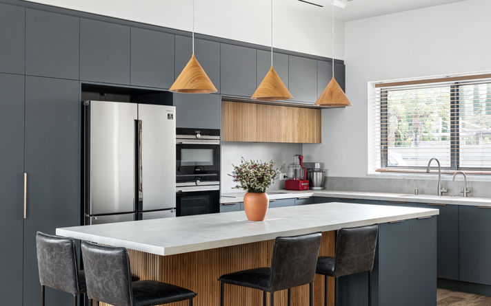 בית פרטי במושב בשרון עבר שיפוץ מהיסוד, מבפנים ומבחוץ. הבית תוכנן מחדש בהתאמה לצרכי הדיירים החדשים, ועוצב בסגנון מודרני חם. חזיתות המטבח הן בגוון ירוק-אפרפר בשילוב של עת אלון. רצפת החלל הציבורי ןחדרי השינה חופתה בפרקט עץ אלון. שולבו בבית נקודות של צבע, בטקסטיל ובאומנות.