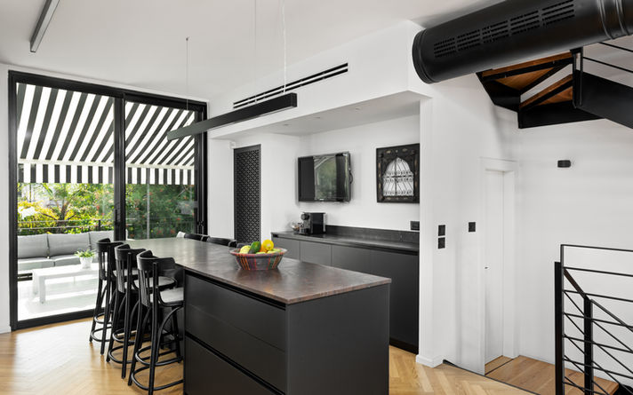 בית פרטי ישן בצפון השקט של תל אביב עבר שיפוץ מהיסוד. הבית תוכנן בהתאמה לצרכי הדיירים החדשים, ועוצב בסגנון אורבני חם עם נגיעות אקלקטיות. הצבעים הבולטים בבית הם שחור ולבן עם נגיעות משמעותיות של עץ אלון.